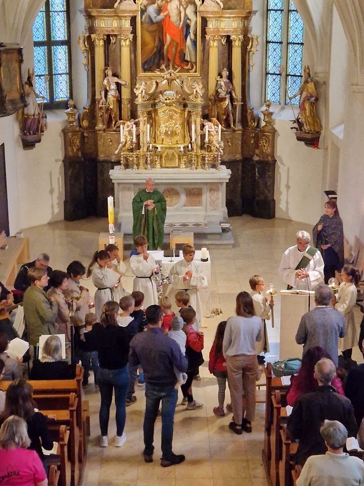 Zelebriert wurde die hl. Messe von Vikar Gerhard Hartmann und Diakon Michi Zepf, der die vielen Kinder zusammen mit den Minis zur Evangeliumsprozession und zum Vater-unser-Kreis einlud – spannende Momente für unsere Kleinen!